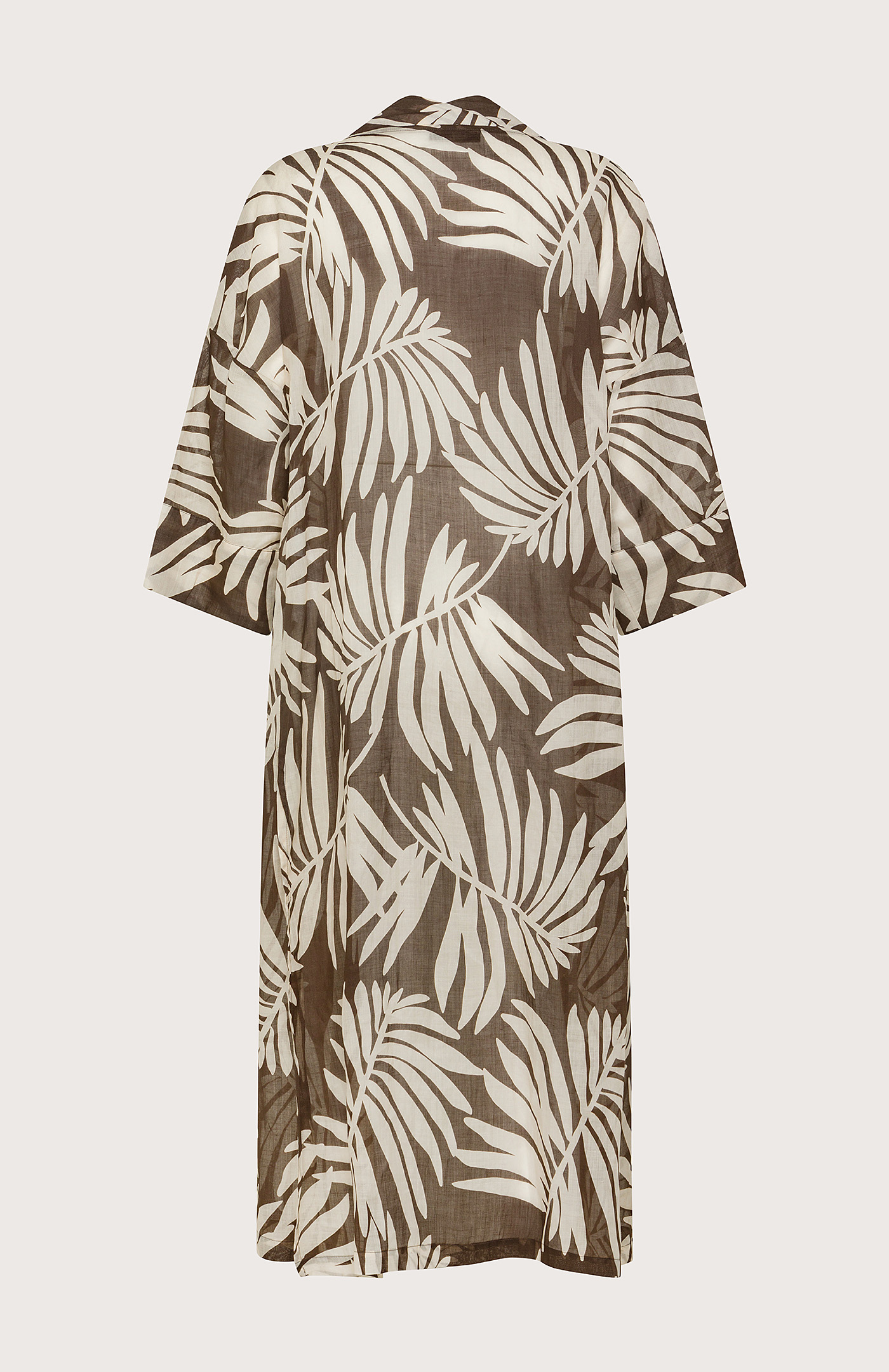 Ľahký a vzdušný kaftan s exotickým palmovým vzorom je dokonalým doplnkom letného šatníka. Priesvitný materiál jemne splýva, zatiaľ čo voľný strih zaručuje pohodlie a nenútenú eleganciu. Ideálny na prehodenie cez plavky či kombináciu s minimalistickým outfitom pre sofistikovaný dovolenkový look. Zloženie: 100% Ramia