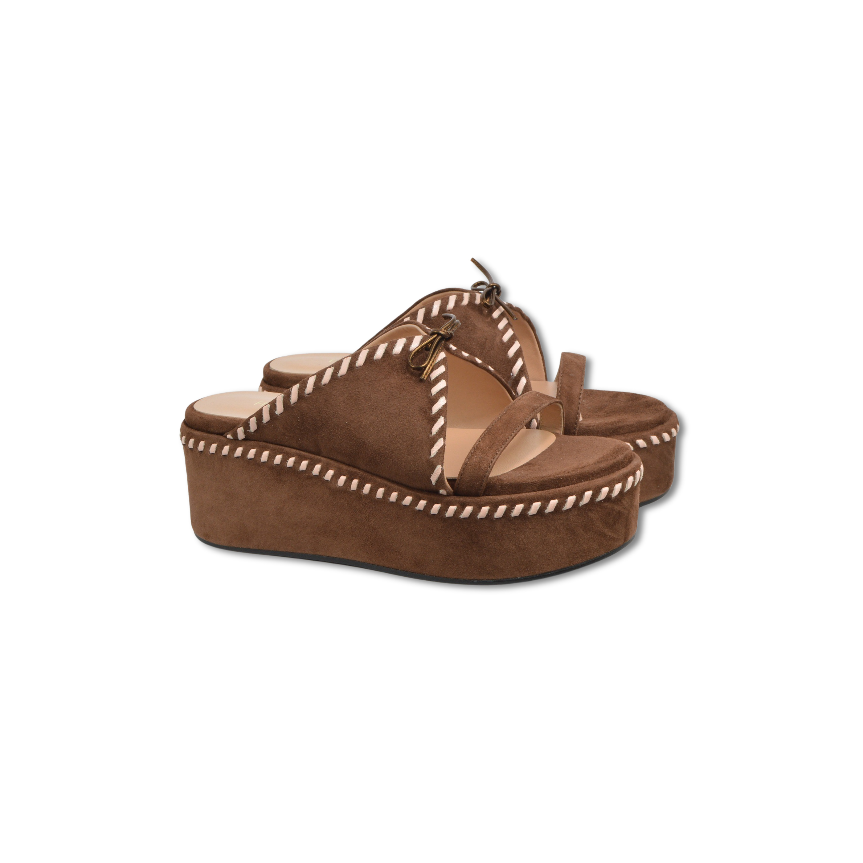Jemná brúsená koža v teplom hnedom tóne pôsobí prirodzene a luxusne zároveň. Mäkká, ergonomicky tvarovaná stielka sa dokonale prispôsobí chodidlu, zatiaľ čo stabilná platforma prirodzene vyvýši postavu pri maximálnom komforte. Ideálna voľba pre dni, keď chceš spojiť pohodlie s nenútenou eleganciou.