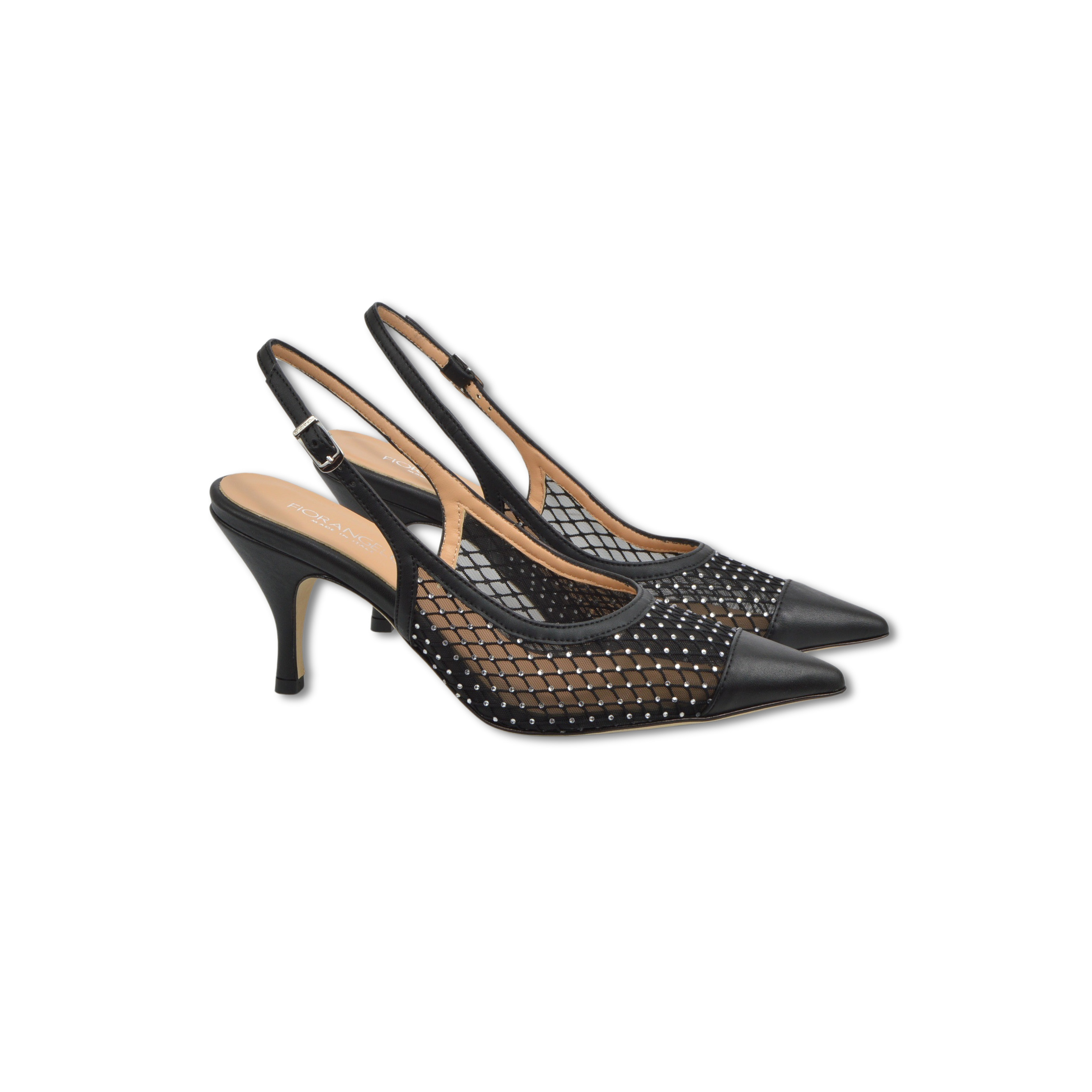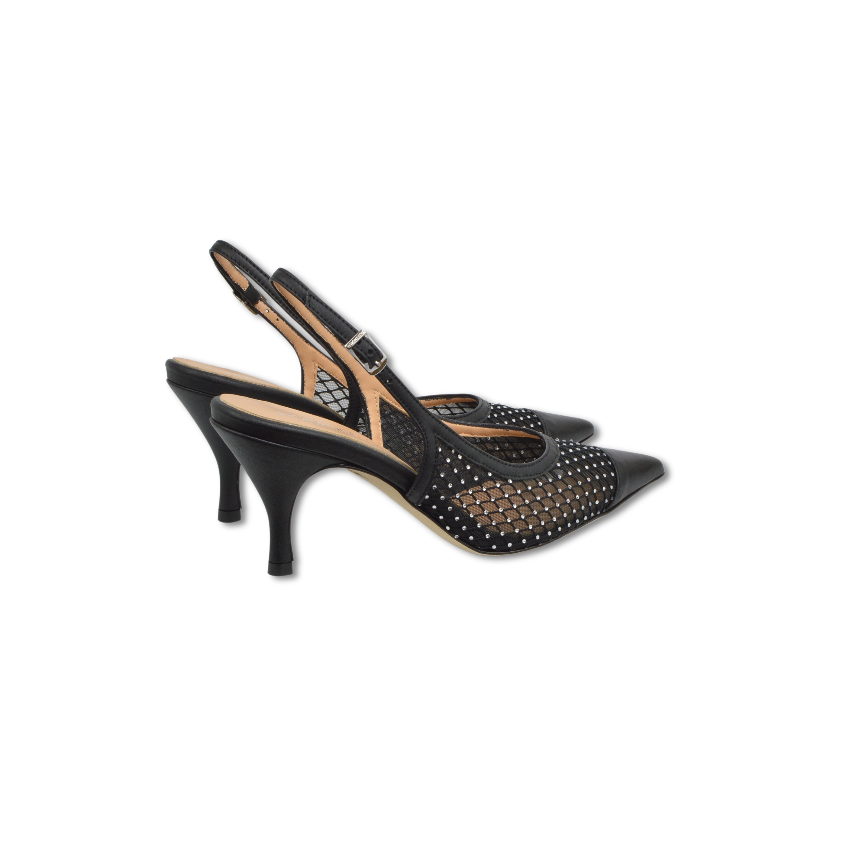 Lodičky s voľnou pätou nappa nero -tess.rete strass