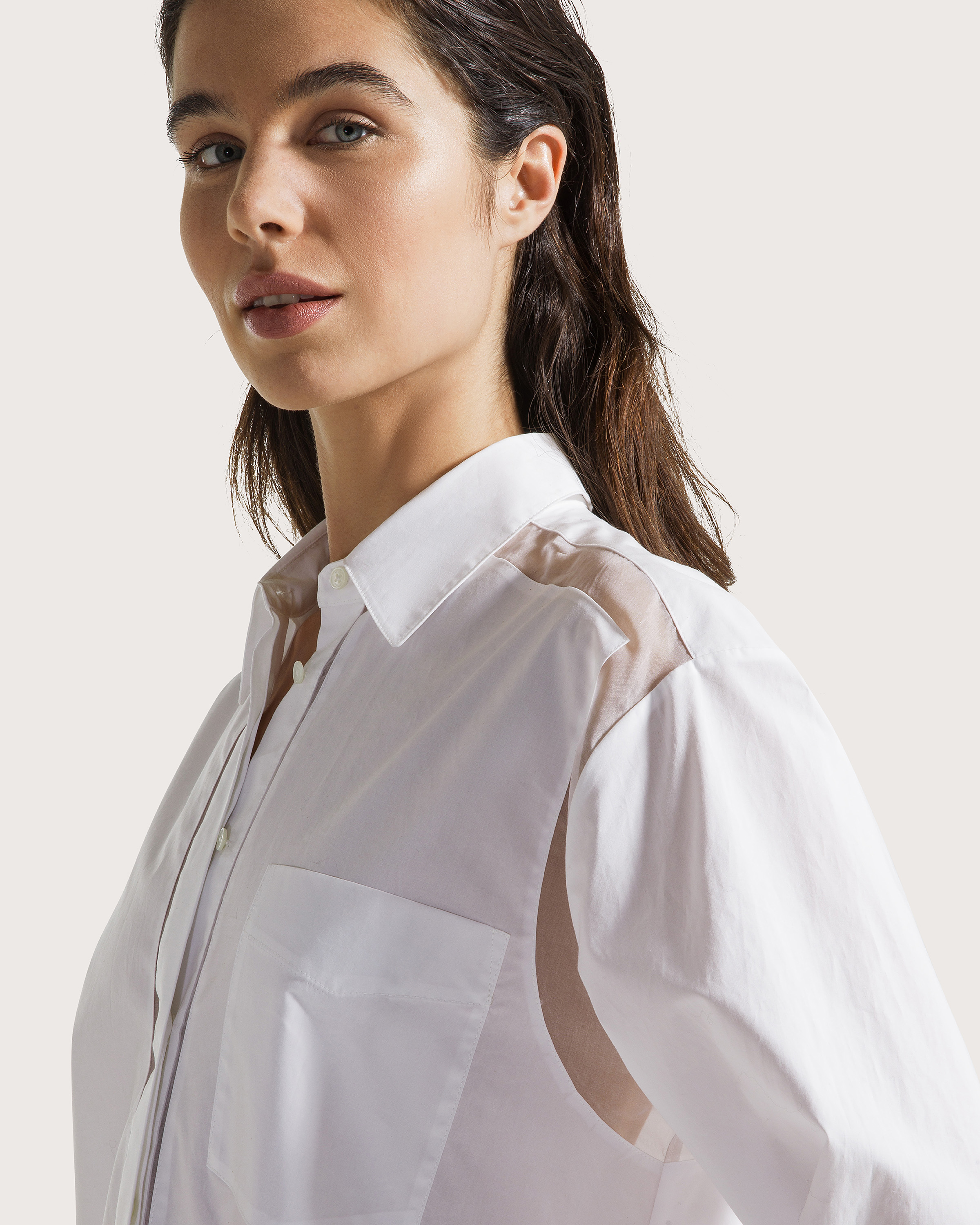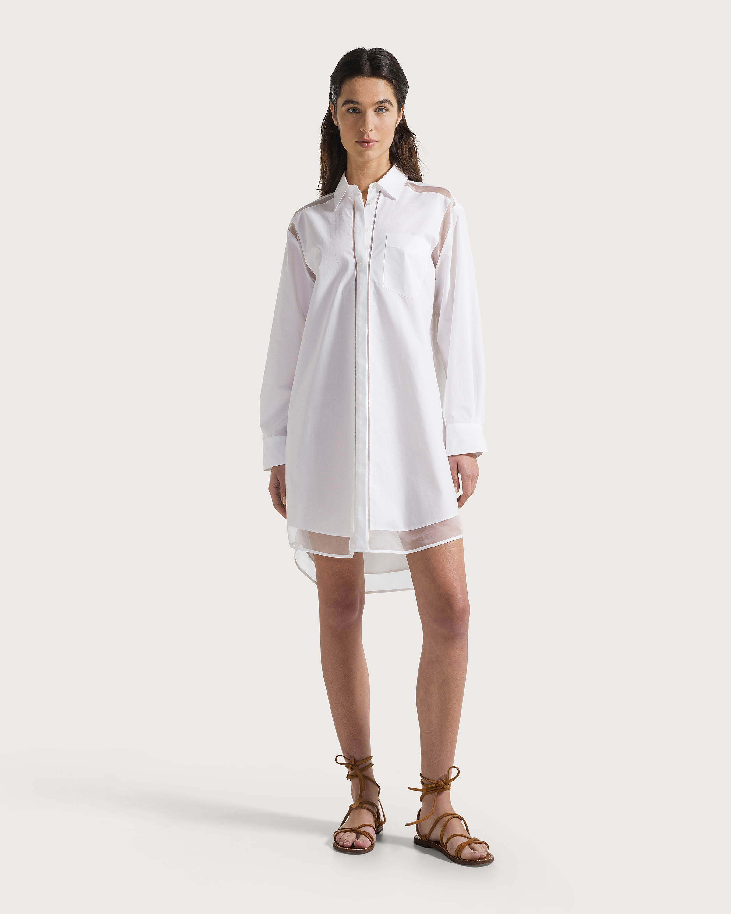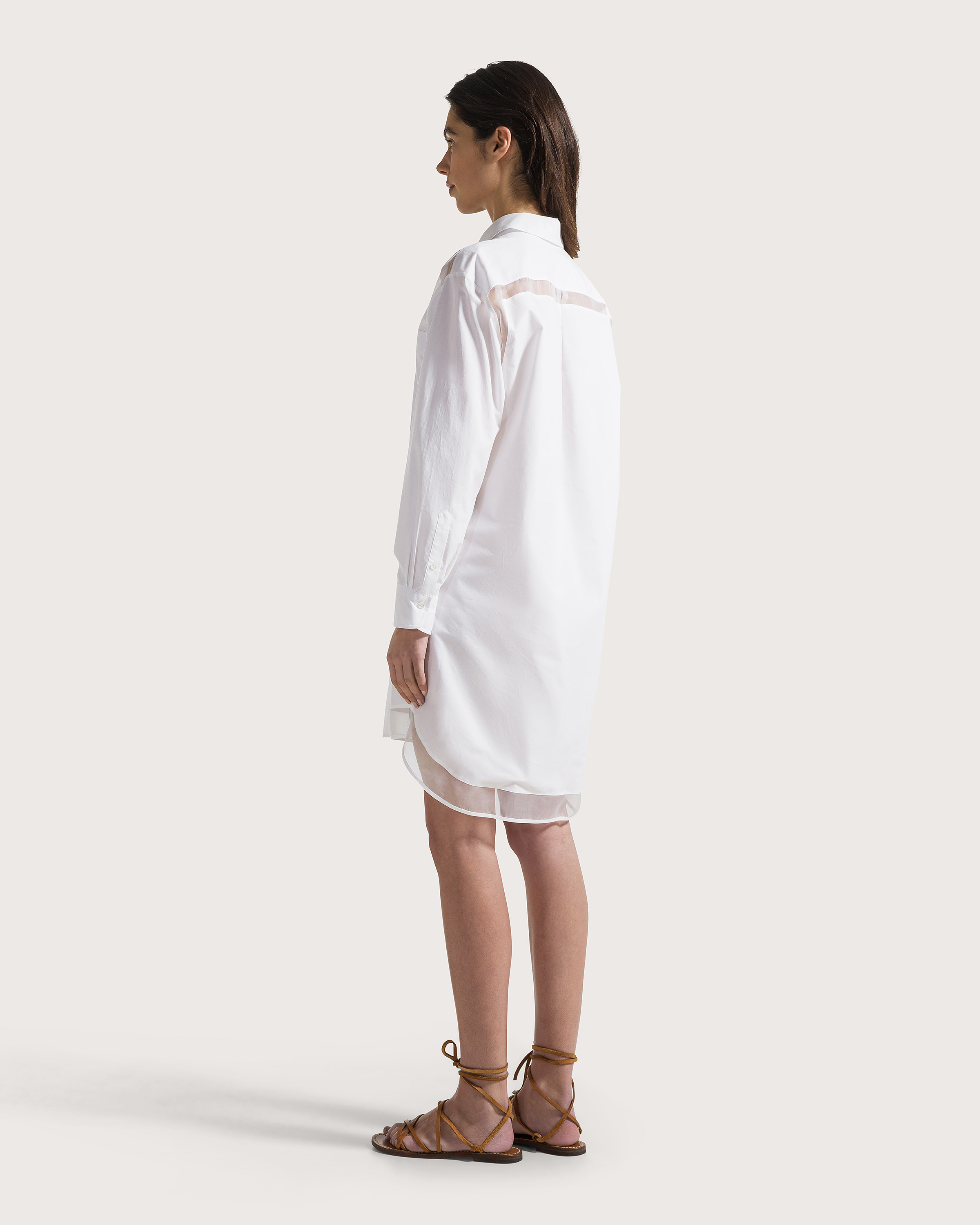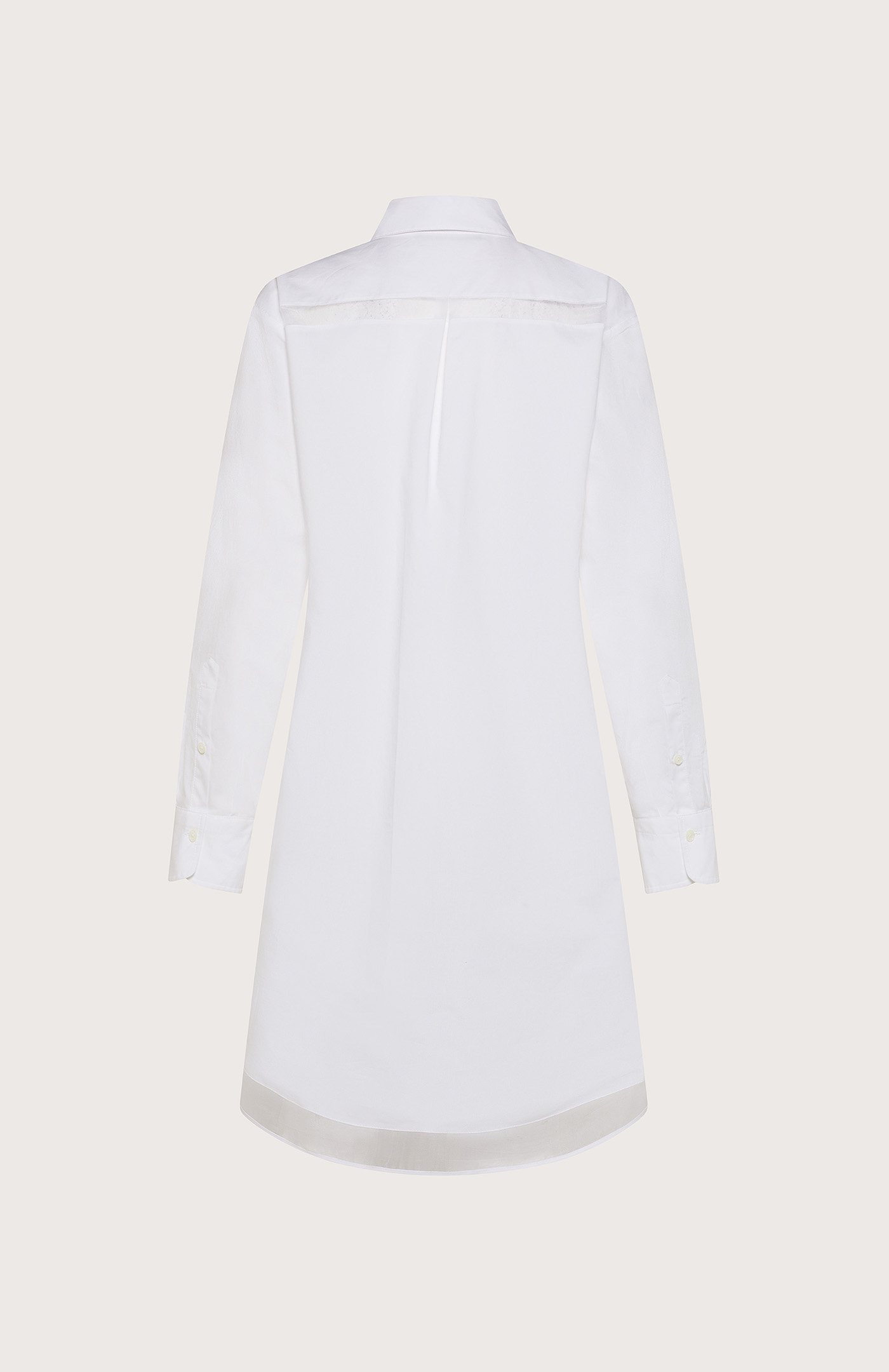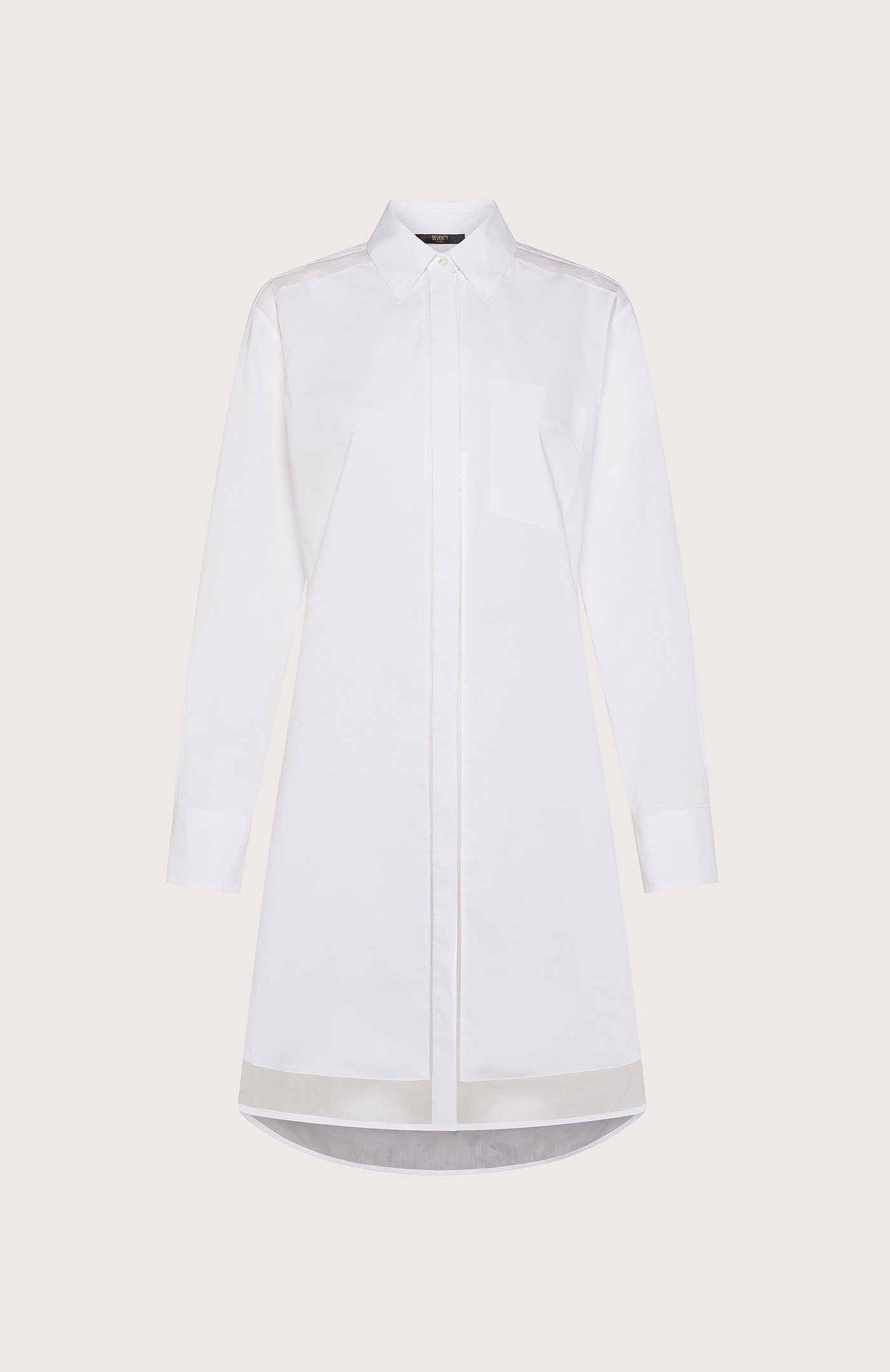 Dlhá biela košeľová tunika s čistými líniami pôsobí sviežo, elegantne a veľmi nadčasovo. Predĺžený strih s jemne zaobleným lemom krásne splýva a dodáva outfitu ľahkosť. Univerzálny kúsok, ktorý funguje samostatne aj vo vrstvených kombináciách. Zloženie: 100% Bavlna