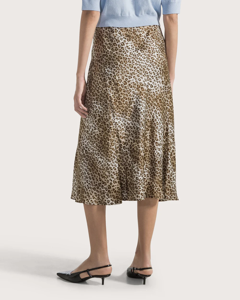 Sofistikovaná sukňa v leopardom vzore dodáva každému outfitu nádych odvážnej elegancie. Saténový lesk a jemná splývavosť látky podčiarkujú ženskosť a taliansky cit pre štýl. Ideálna na kombinovanie s jednofarebnými kúskami pre vyvážený, moderný vzhľad.. Zloženie: 100% Viskóza