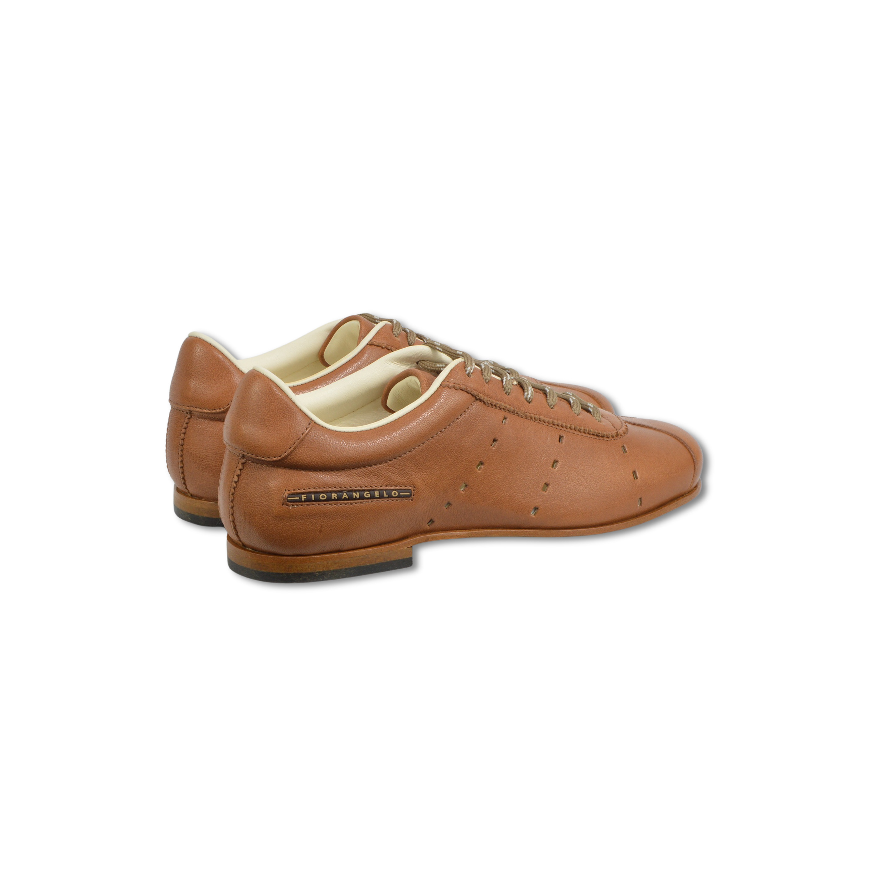 Klasické topánky v teniskovom štýle, ktoré v sebe nesú nadčasovú eleganciu a nenápadný „old money“ šarm. Teplý koňakový odtieň kože pôsobí luxusne a prirodzene, zatiaľ čo jemná perforácia dodáva modelu ľahkosť a sofistikovaný charakter inšpirovaný golfovou estetikou.
